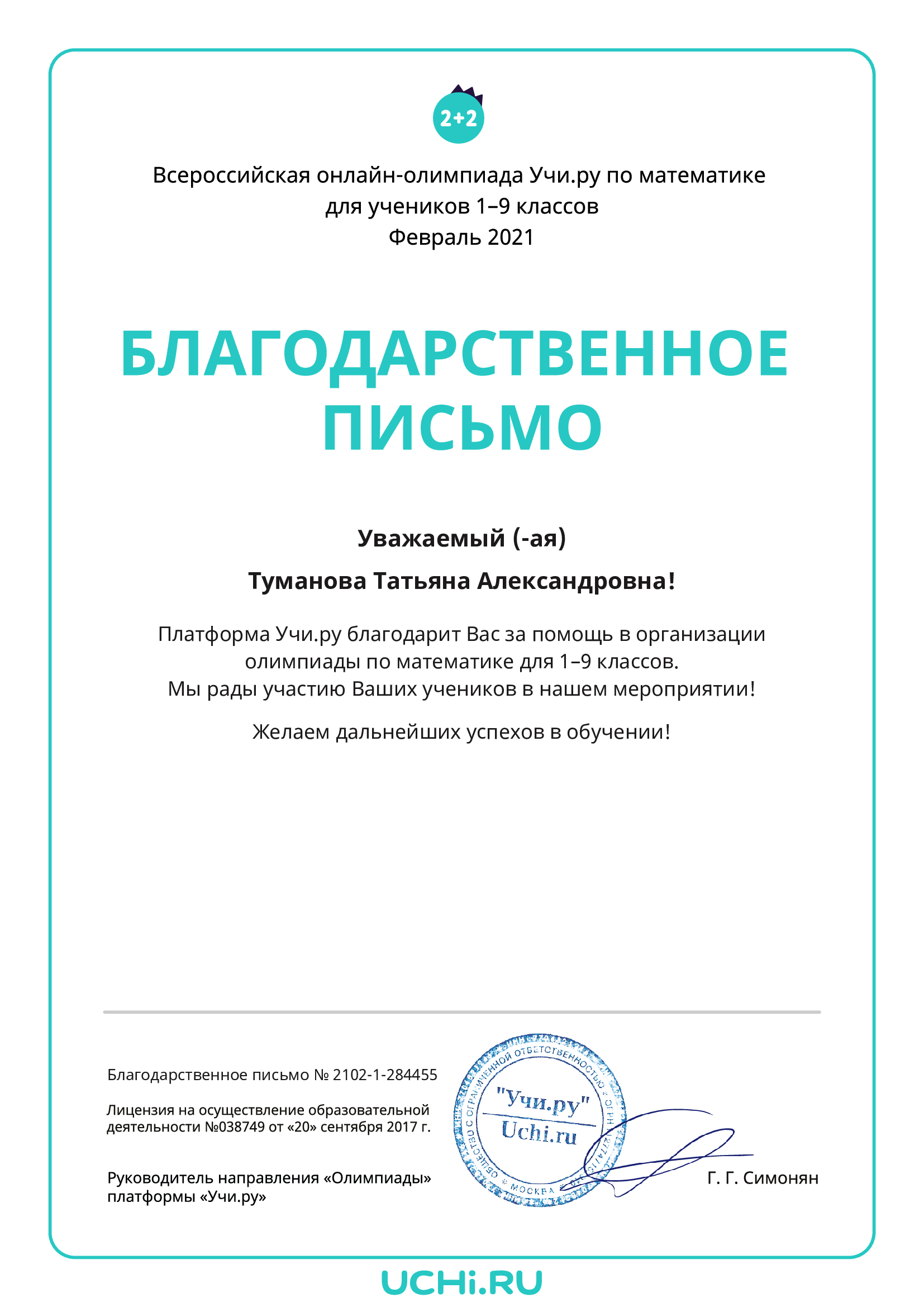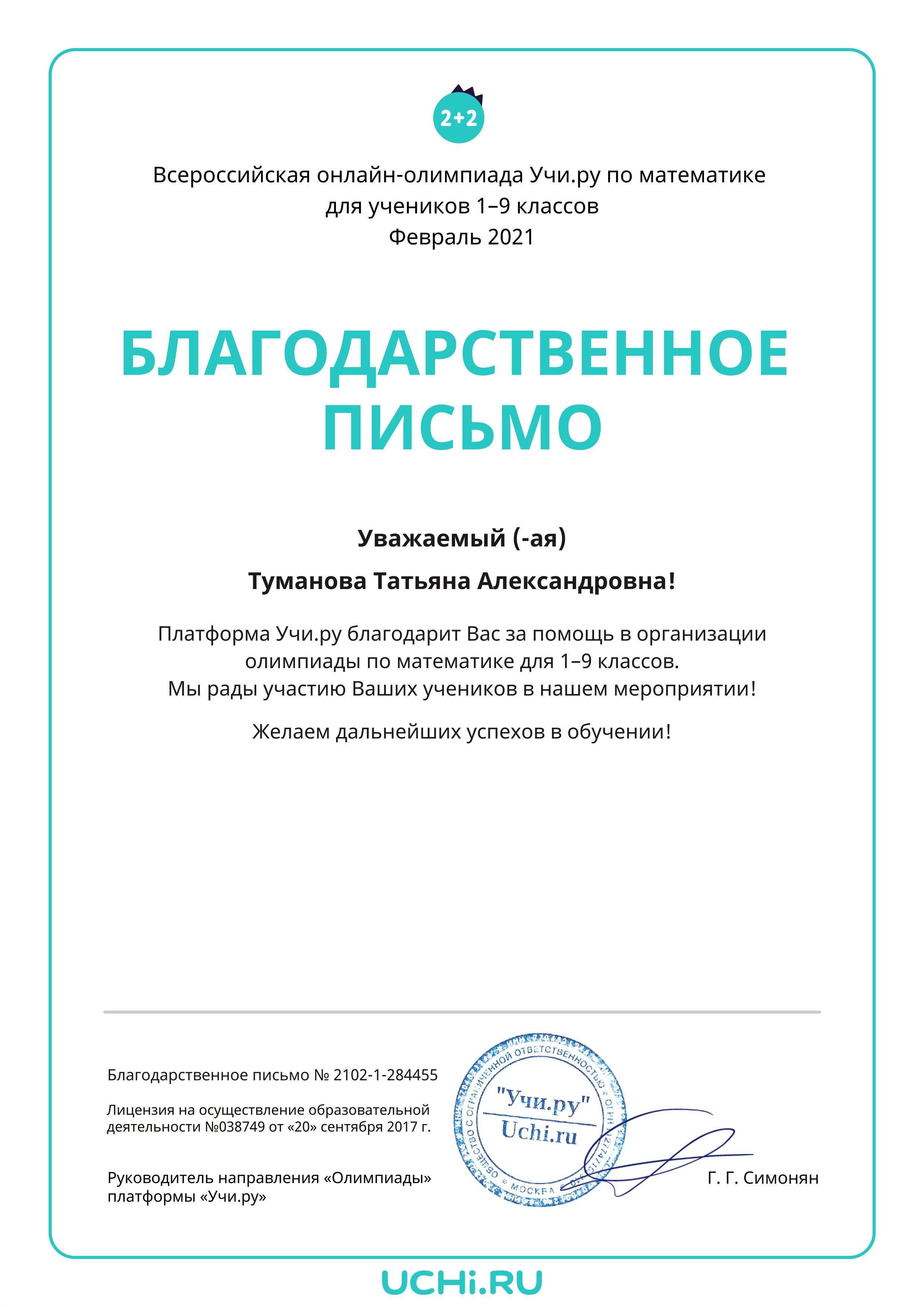 Я, Татьяна Александровна. Учитель математики (алгебры и геометрии) в МОУ "СОШ" 38. Имею высшее педагогическое образование. Работаю учителем математики с 2013 года. На данный момент являюсь классным руководителем чудесного 6 "А" класса. Очень люблю свою работу и учеников. Моя задача воспитать у ребёнка жажду к умственному труду, несмотря на всю его сложность. Работая учителем, стараешься часто ощутить, осмыслить, может быть, до сих пор не раскрытую для себя истину: «Кто же ты, педагог? В чем смысл твоего труда?» Пекарь через несколько часов радуется испеченному хлебу, парикмахер уже через час видит результат своей работы, агроном видит всходы, которые он вырастил. И только учителю надо трудиться и трудиться, ждать годы, чтобы увидеть результат своего творения и почувствовать себя счастливым. Мне важно каждое утро входить в класс в хорошем настроении, видеть радостные лица ребят, довольных и спокойных родителей. В такие моменты я чувствую себя абсолютно счастливым человеком.